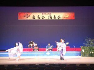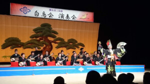 前半の揉ノ段は、足拍子を力強く踏み、軽快・活発に舞う。