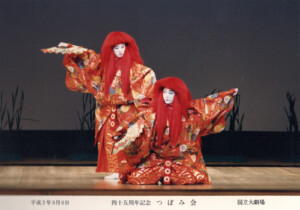 後半の鈴ノ段は、黒式尉を付け、鈴を振りながら、荘重かつ飄逸ひょういつ(のびのび)に舞う。