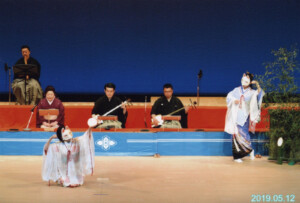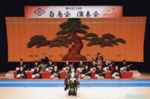 後半の鈴ノ段は、黒式尉を付け、鈴を振りながら、荘重かつ飄逸ひょういつ(のびのび)に舞う。